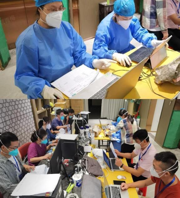 面对疫情冲击,花都区教育系统干部、青年教师听从号令,使命在肩,主动请缨,迎难而上及时赶赴花都区中高风险地区展开支援工作,哪里需要他们,他们就去哪里。唐焜等18名同志支援新华街高风险地区,在参与轮胎厂小区、丽翠苑小区核酸检测时,因小区没有电梯,身着防护服的队员们都累得气喘吁吁、大汗淋漓。