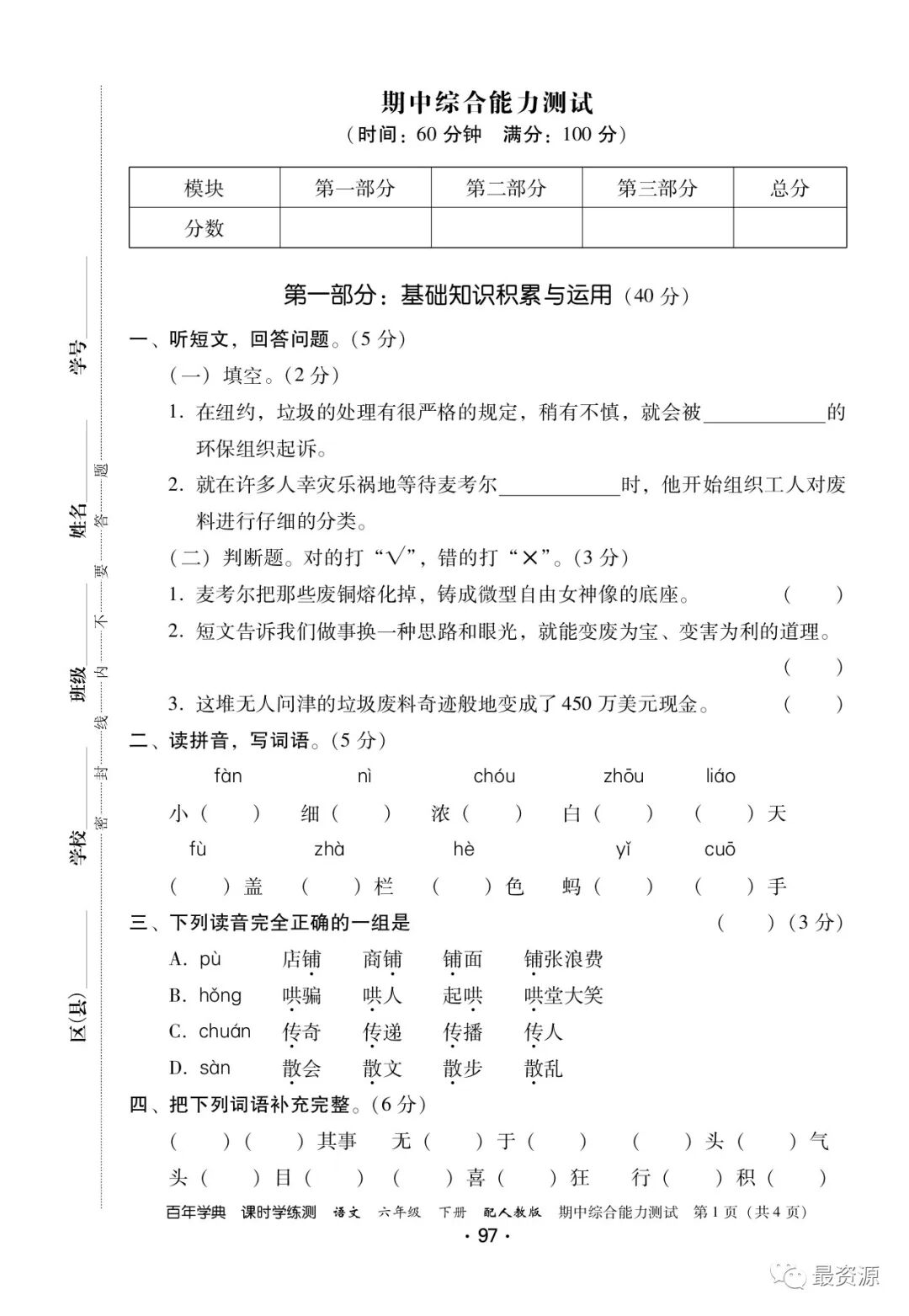 教研室的老师,昨天给大家分享了一套《语文学练测》,家长反响不错!今天,再给大家分享部编版语文六年级下册《精编版预习本》,1-8单元,全册都有了。有需要的家长、老师,可以领取电子版,打印给孩子!