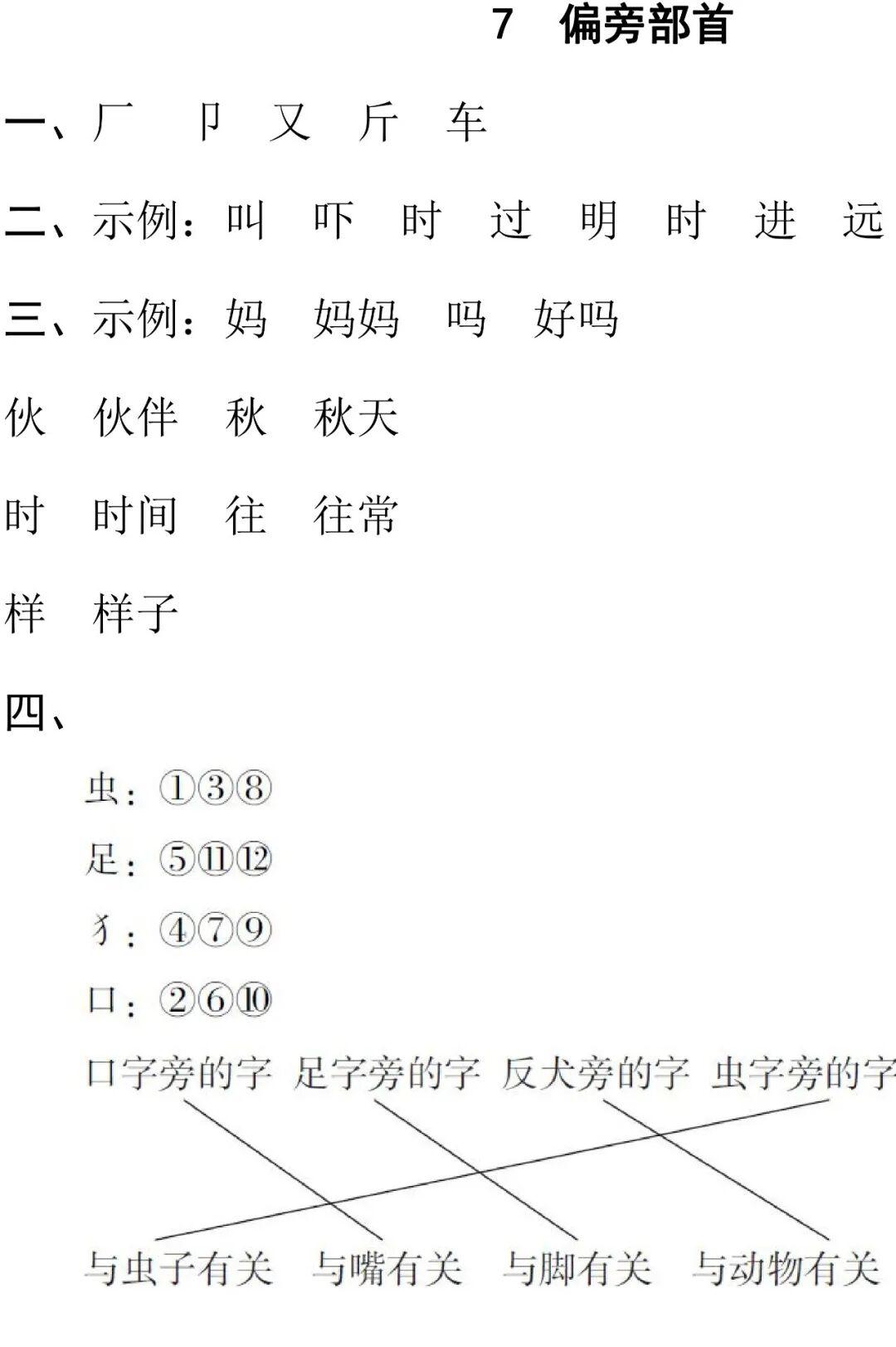 统编版语文一年级(下)期末专项训练卷7—偏方部首