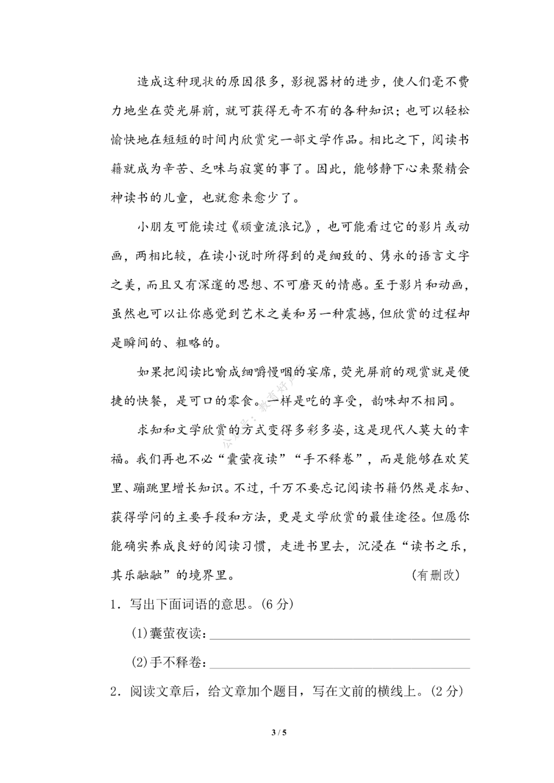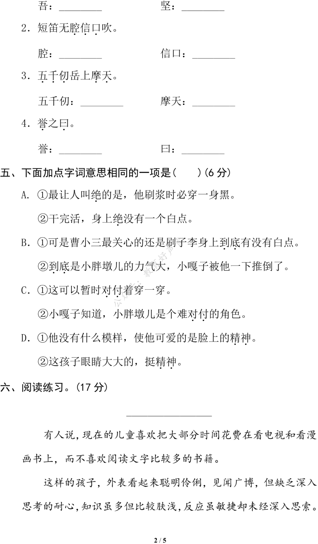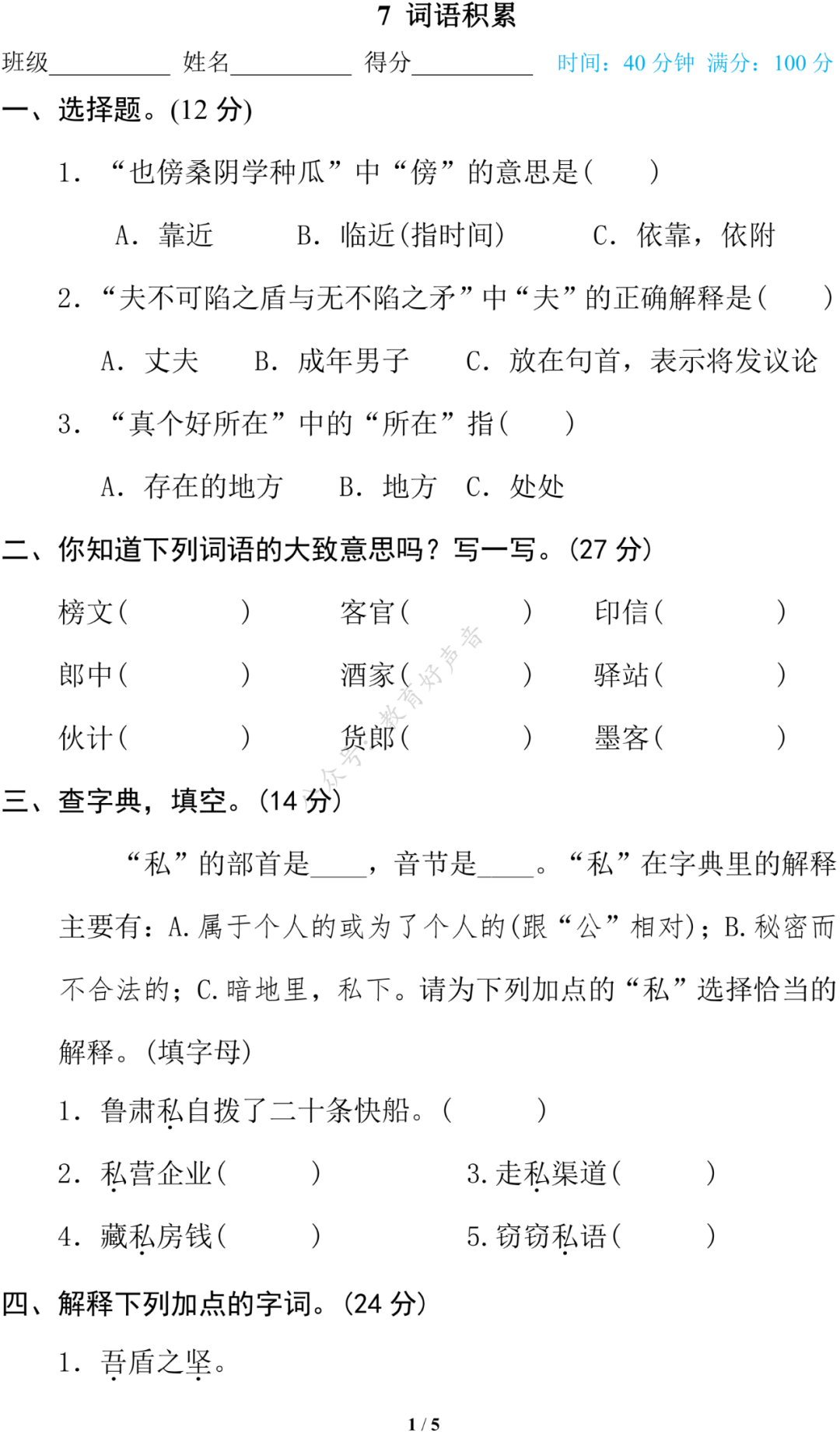 统编版语文五年级(下)期末专项训练卷7——词语积累