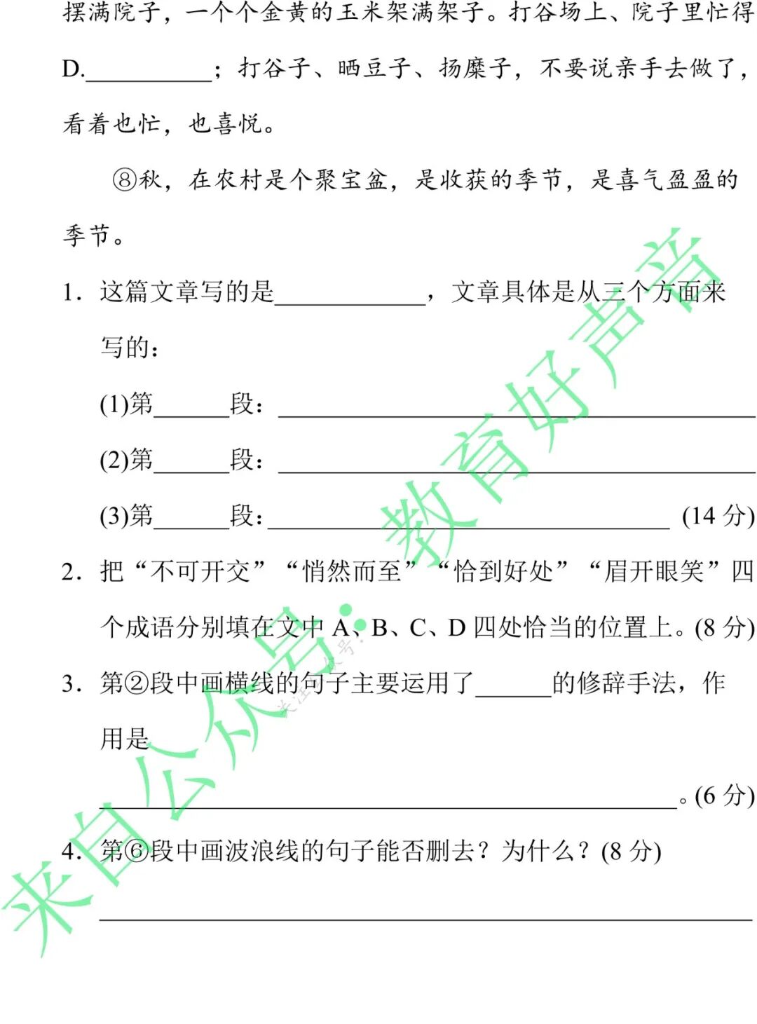 统编版语文六年级(下)期末专项训练卷15——层次段落