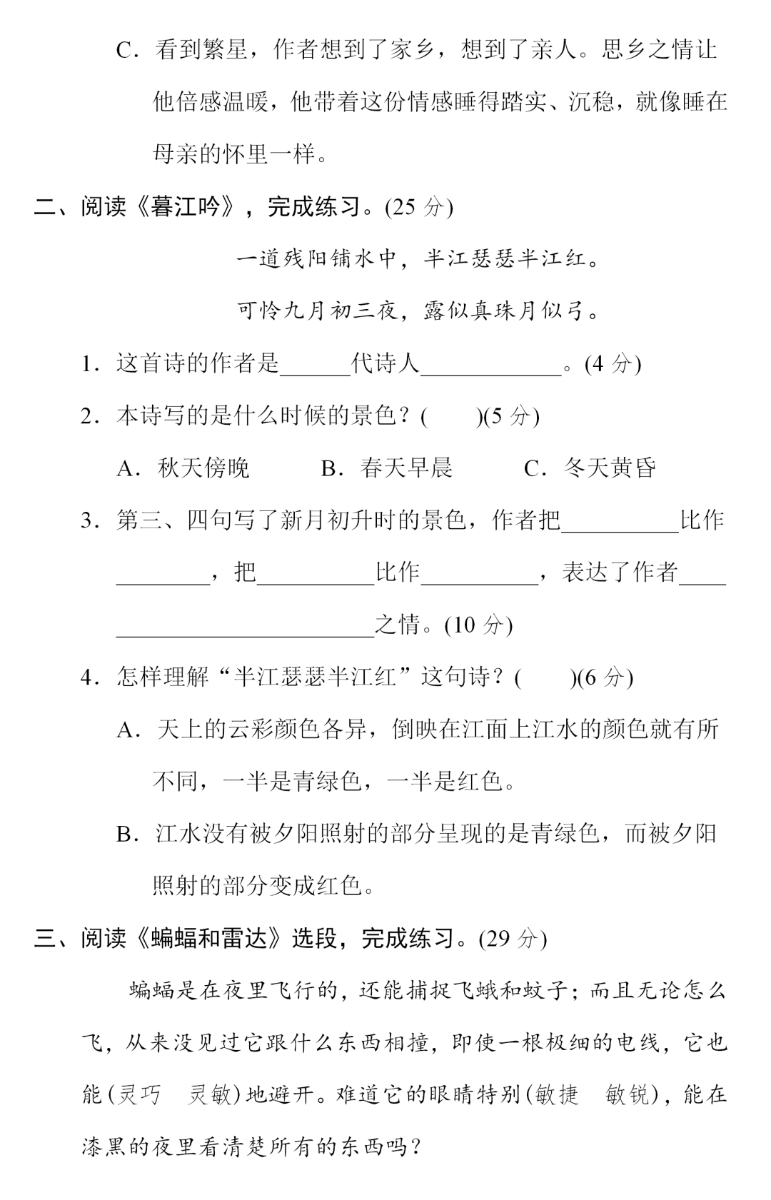 专项训练、答案
