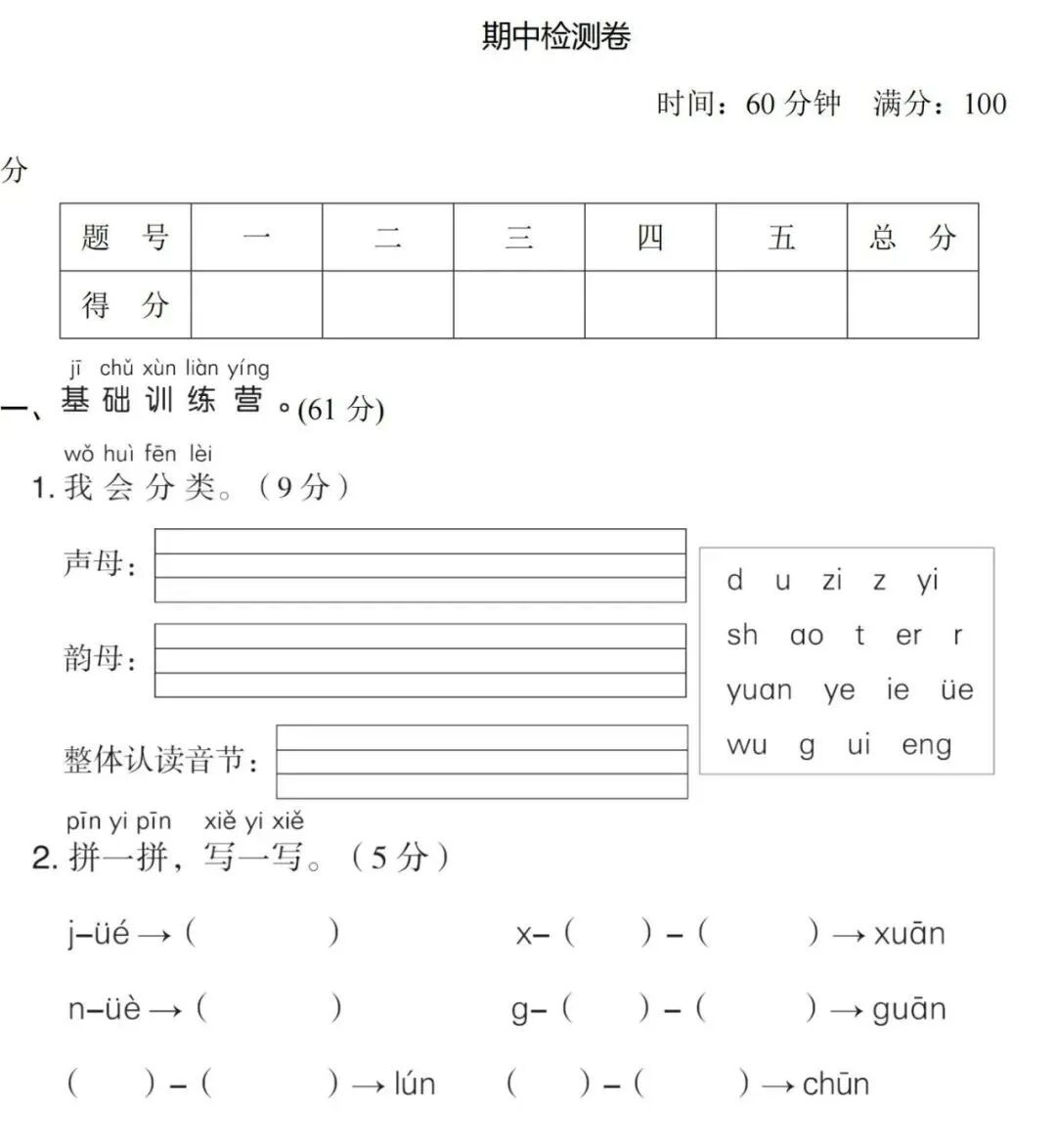 语数英1-6年级(上)第1~3单元试卷+月考试卷