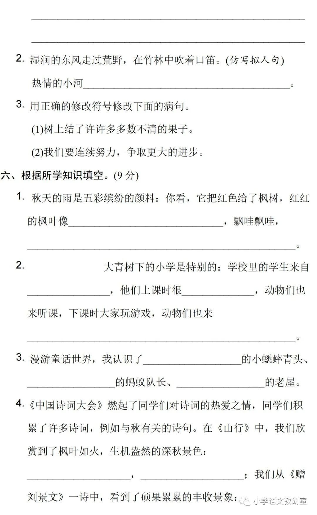 统编语文1-6年级(上)第1-4单元知识梳理填空