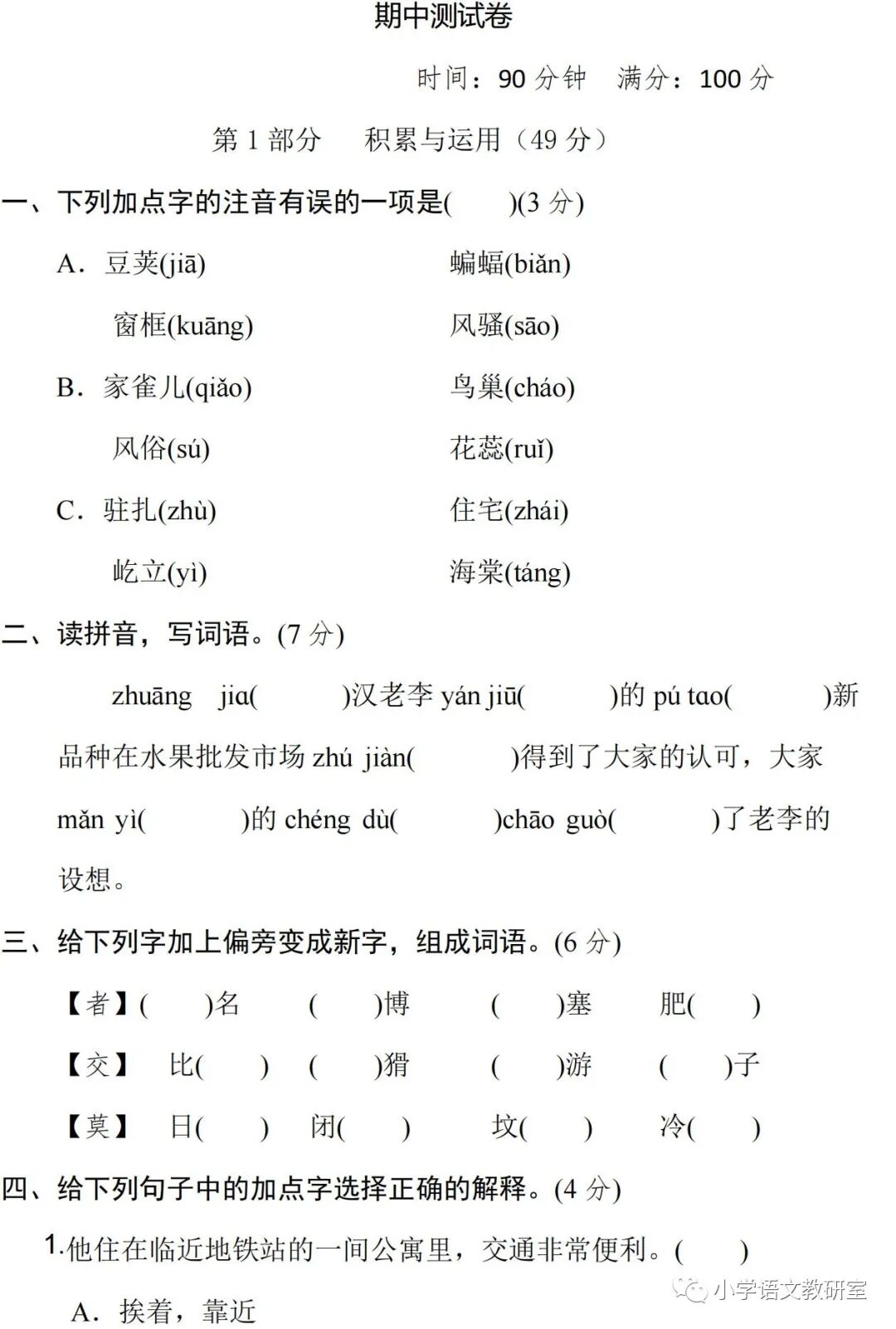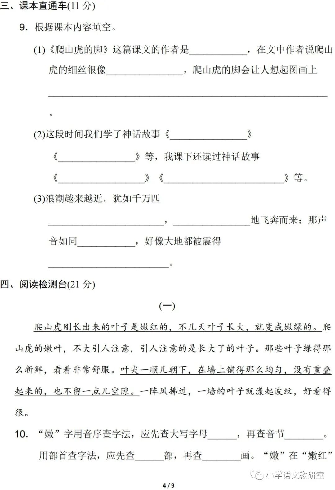 海量免费资源☞ 小学语文教研室