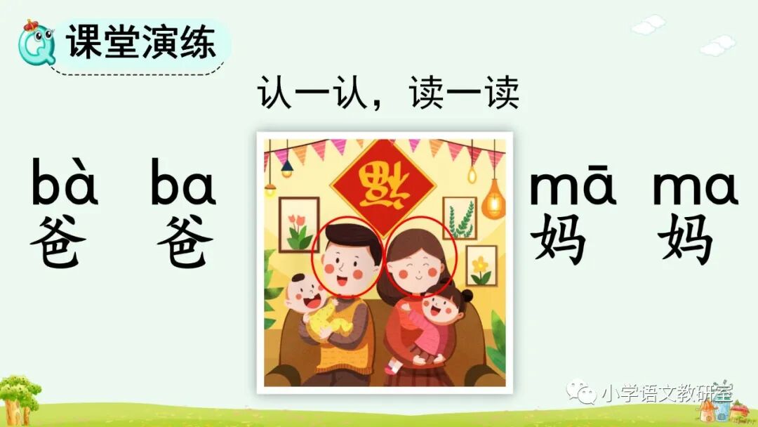 “妈”读第一声,“爸爸”“妈妈”第二个字都要读轻声。