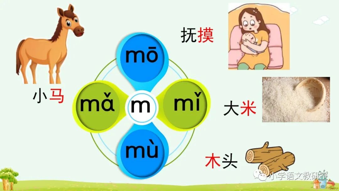 ▲ 在拼读中,最难的是b、p、m、f和o拼。因为孩子在读o的时候有时候不够准,所以会出现b-uo和b-ou的拼读,这都是不对的。o的嘴型不能动,b、p、m、f和o拼,要拼出“波、坡、摸、佛”的读音才是正确的。进而补充拼读wo。