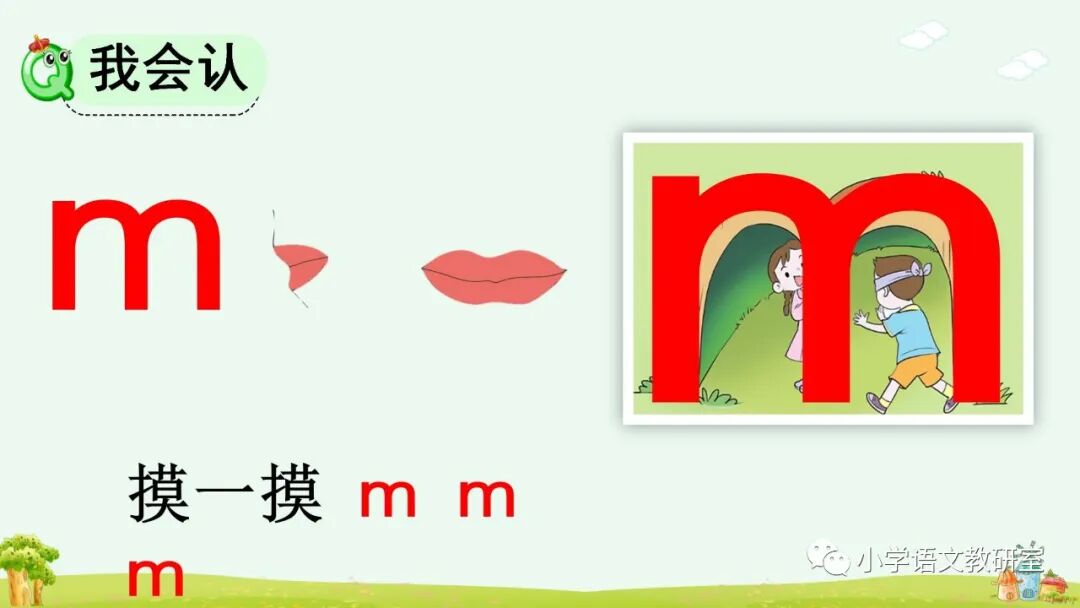 发 m 时,双唇闭合,把气堵住,发音时气流从鼻腔出来,声带颤动。