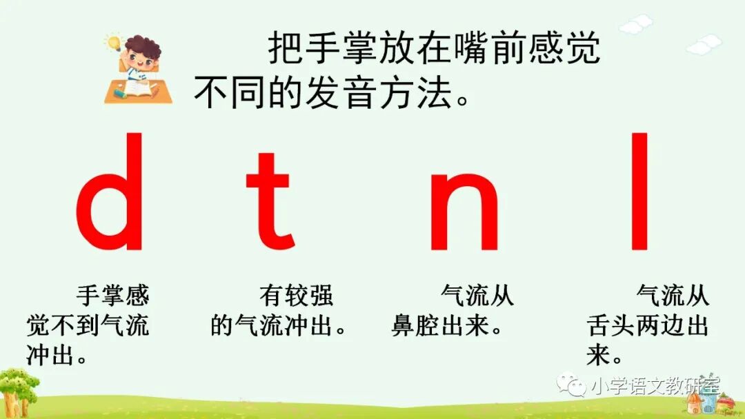 d、t、n、l 都是由舌尖接触上齿龈而形成的音,叫舌尖音。