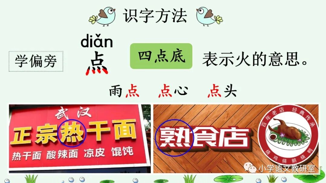 灬:四点底,四点底的字代表两个意思。一个意思与火有关,如:煮、蒸、煎、熬等。另一个意思表示尾巴,如:燕、羔等。