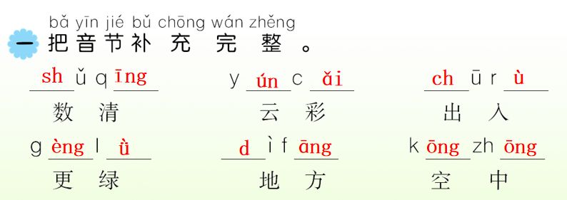 3.彩(彩色) 到(看到) 空(空中)