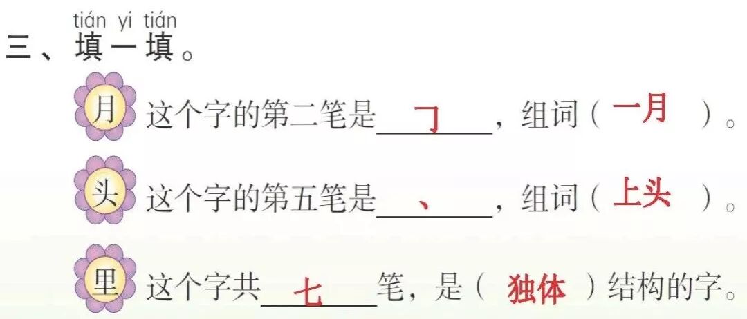 (1)“月”共________笔,第2笔是(hénɡ zhé hénɡ zhé ɡōu)。