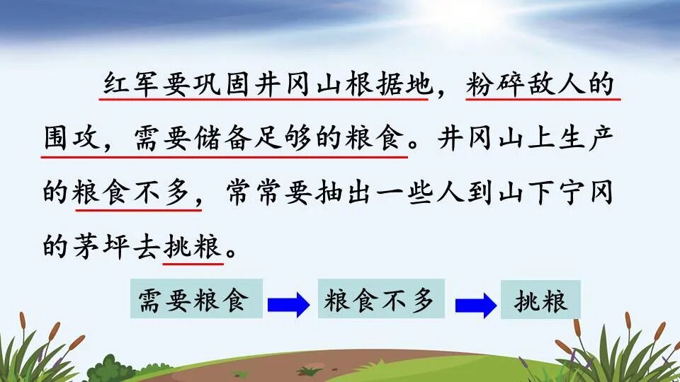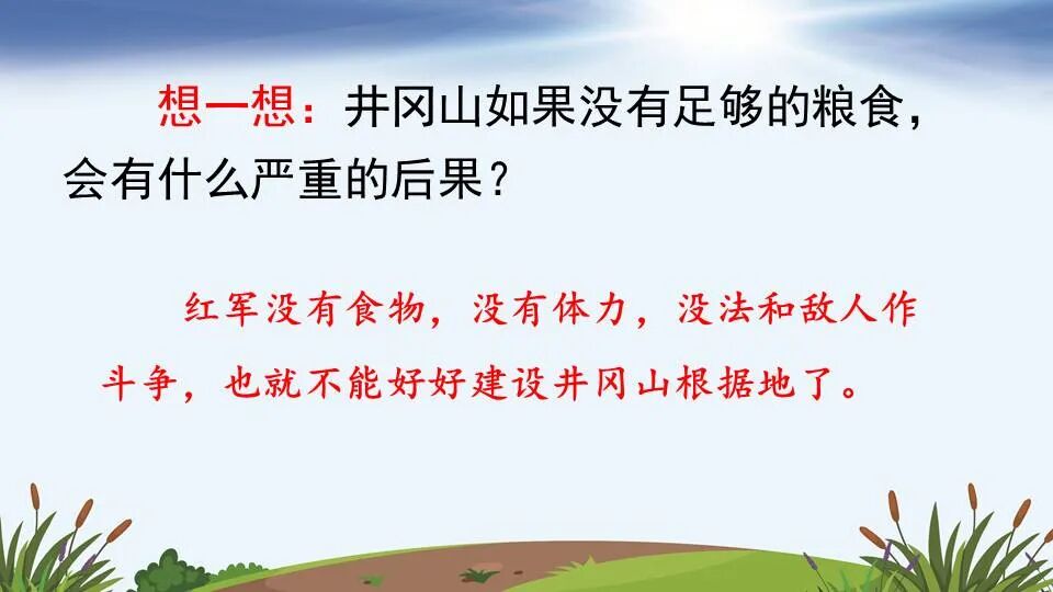 红军没有食物,没有体力,没法和敌人作斗争,也就不能好好建设井冈山根据地了。