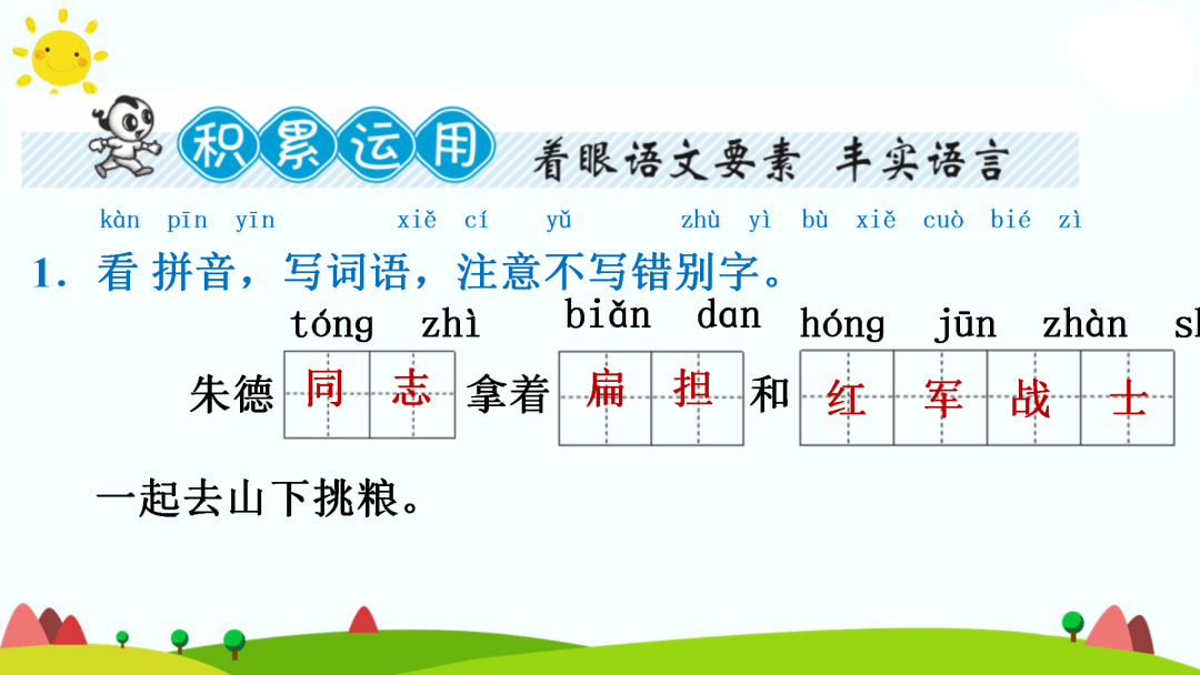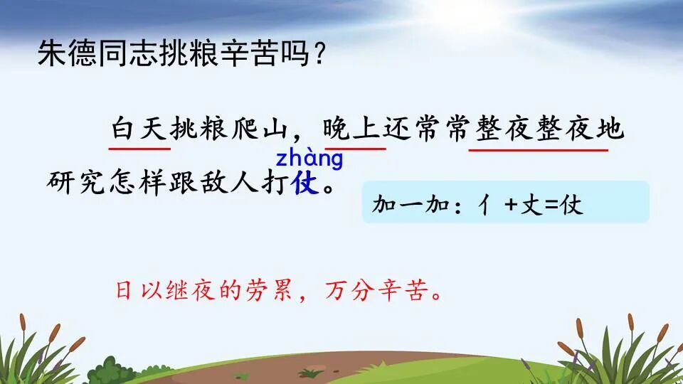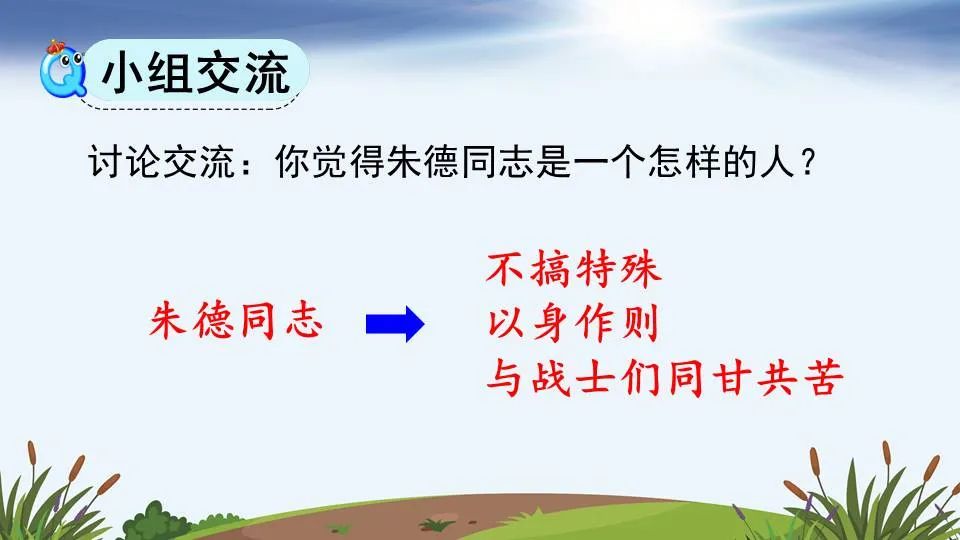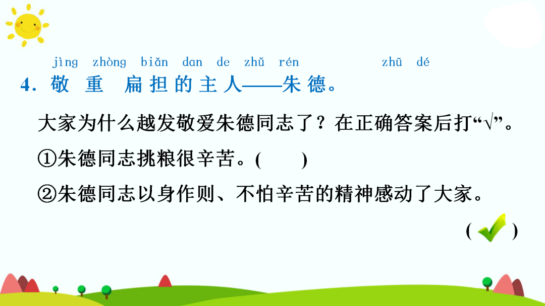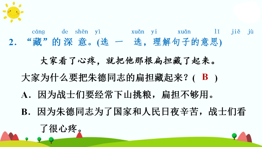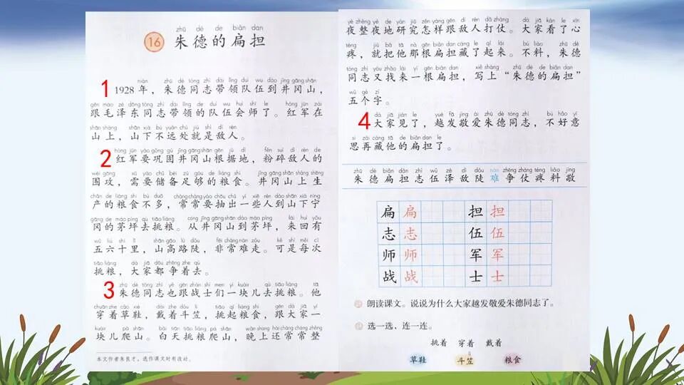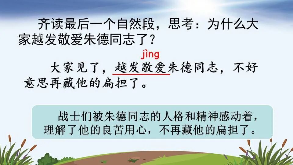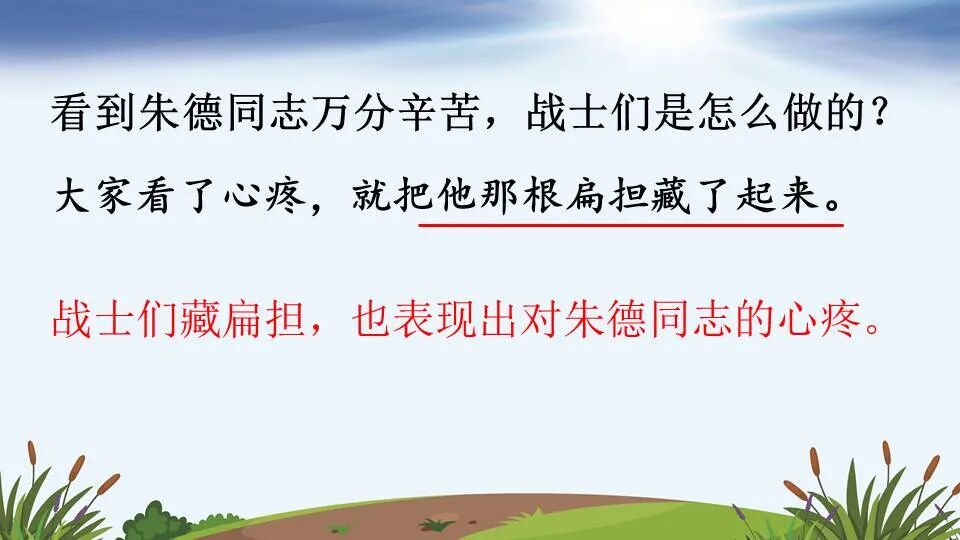 2.大家见了,越发敬爱朱德同志,不好意思再藏他的扁担了。