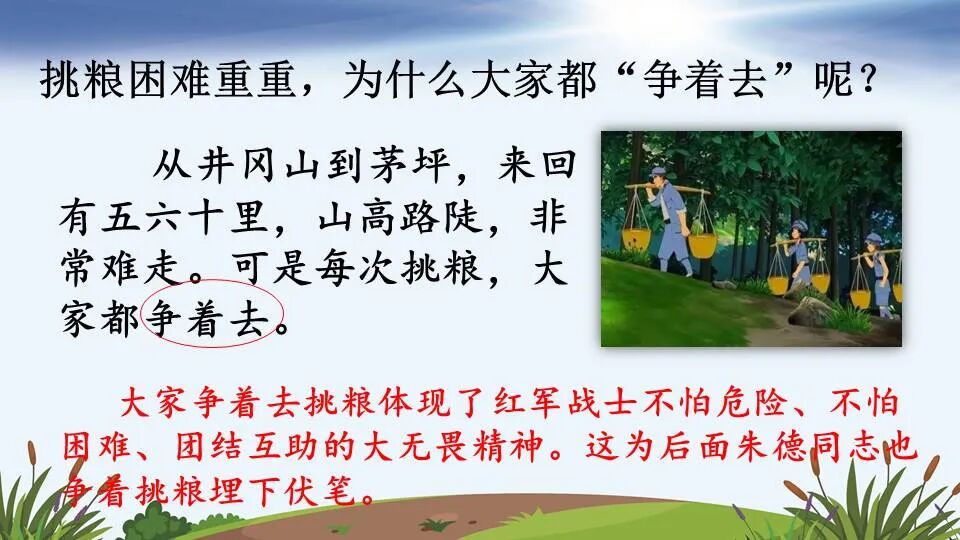 朱德同志和战士们一起去茅坪挑粮的故事。