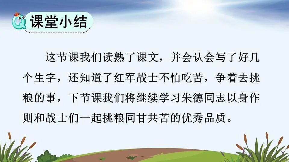 本文是讲了1928年,朱德与毛泽东在井冈山会师,朱德同志和战士们一起挑粮的故事,表现了革命领袖以身作则,与战士们同甘共苦的高尚品质,也表现了战士们对领袖的关心和敬爱。