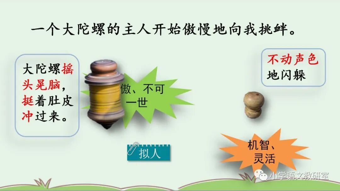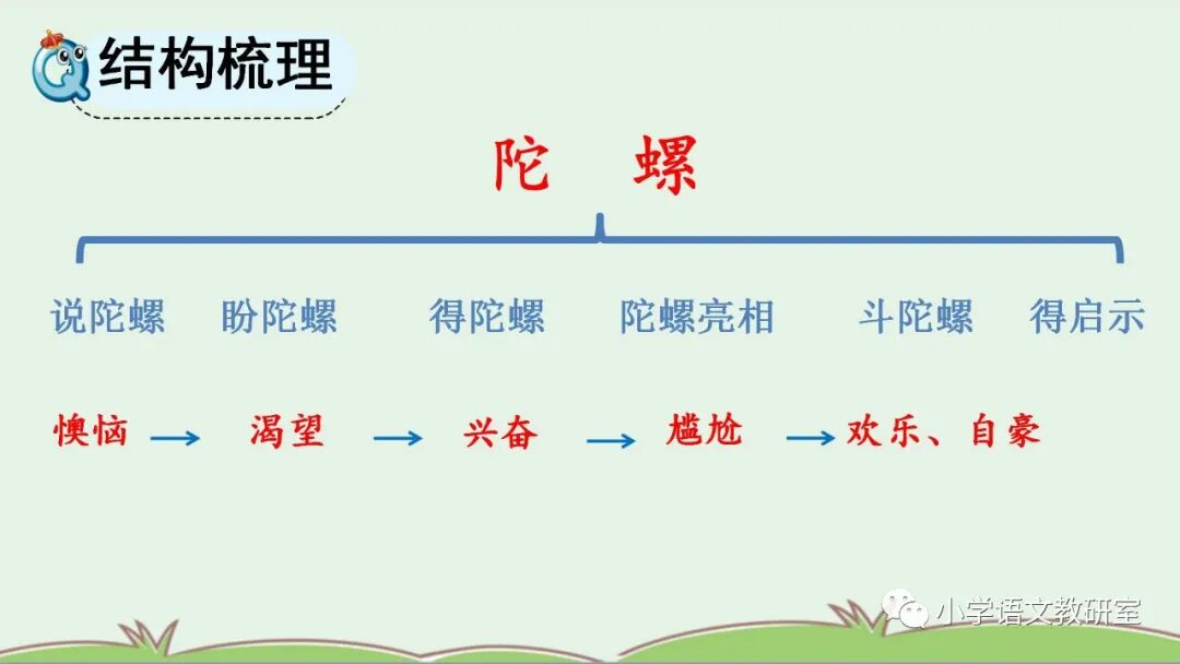 本文以陀螺为线索,主要叙述了作者的一只其貌不扬的小陀螺战胜大陀螺的事情,作者从中悟到了一个深刻的道理,体会到了成长中的快乐,表达了对陀螺的喜爱之情。作者以儿童的眼光和心理去观察事物、描写事物,字里行间充满了童真童趣。