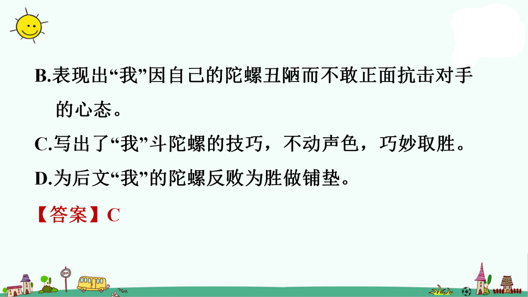 这个句子写出“我”陀螺充满期待,心里十分高兴。