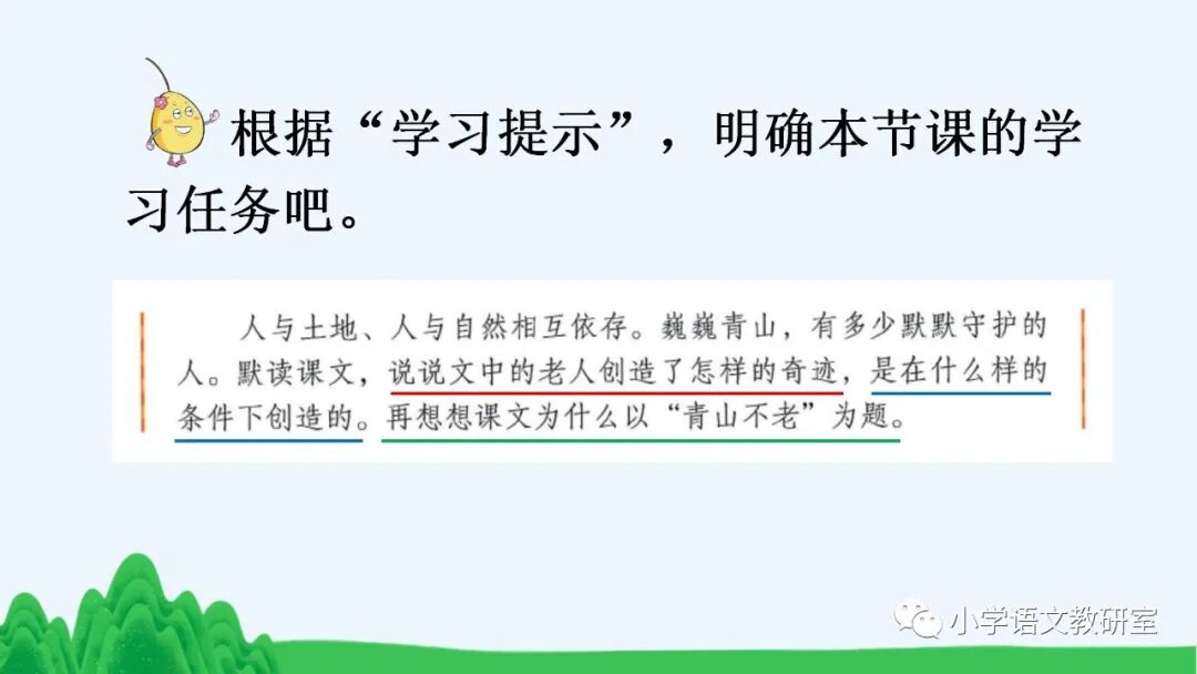 3、课文为什么以“青山不老”为题?