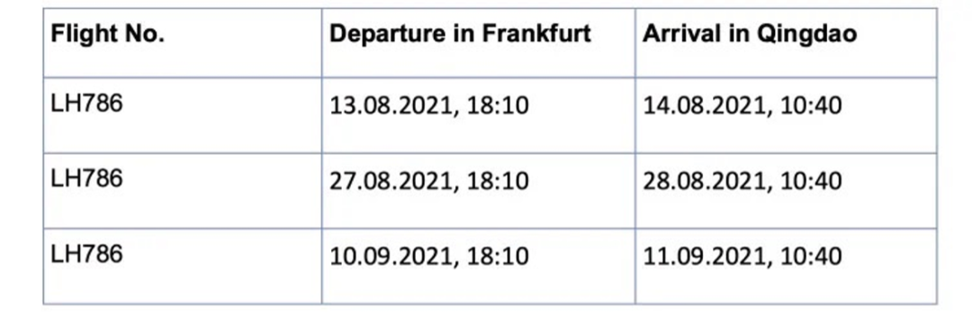 Welcome to China! On Saturday, 191 passengers of this summer’s first German Chamber Charter flight arrived safe and sound in Qingdao (TAO). The next flight will depart Frankfurt to Qingdao on Friday, 30 July.