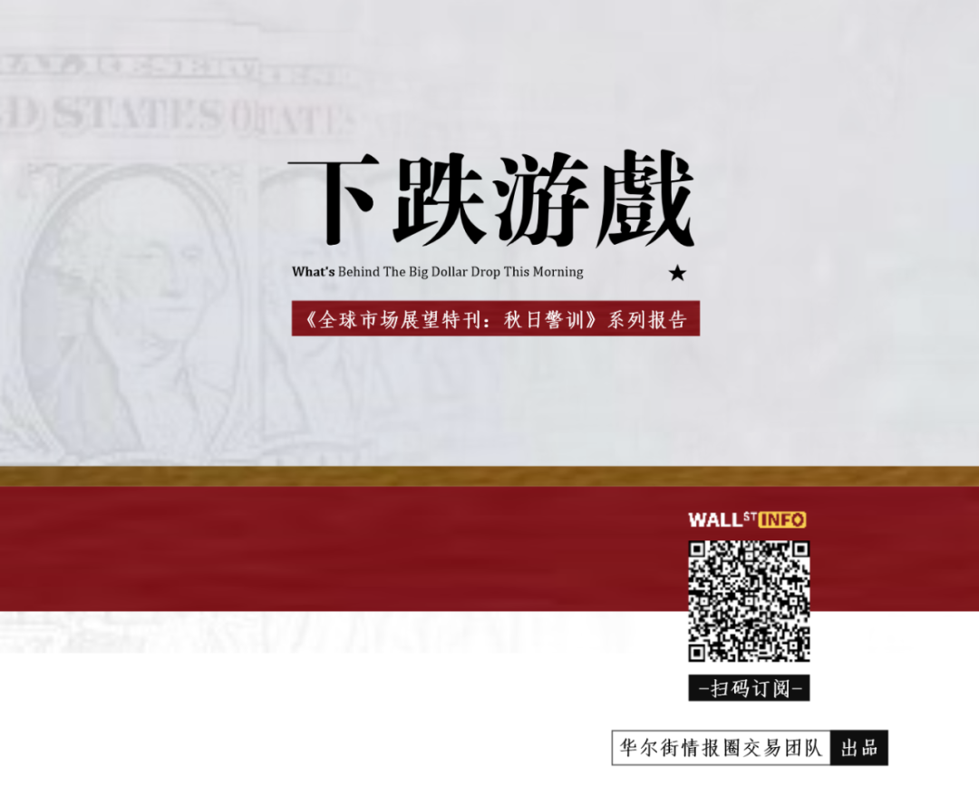 今天凌晨我们启动《全球市场展望特刊:秋日警讯》的紧急更新,发布《下跌游戏》报告,解密美元走势背后的秘密,以及对未来的预测。这份报告不仅仅是结论重要,看过当中的分析逻辑,也会让你在其他市场的交易中获益。