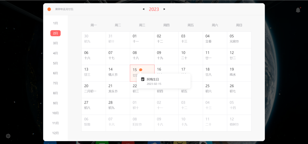 那么当这一天来临时,小组件「日历」上,便会提示今日有一项特殊事件。