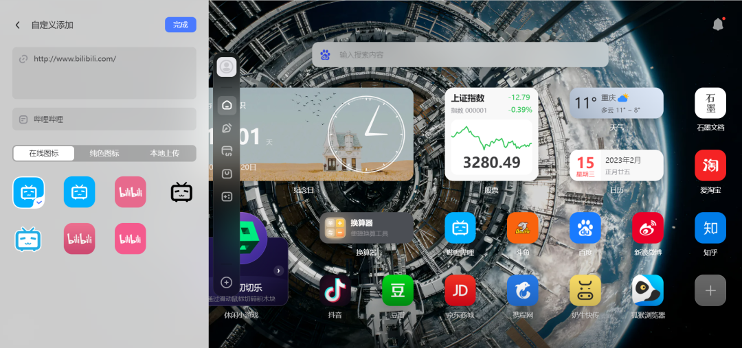 点击左侧边栏,可快速创建新的图标页面,将不同的网站图标按类别区分。