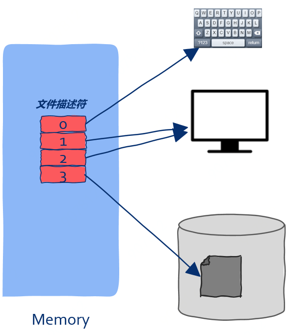 有了文件描述符,进程可以对文件一无所知,比如文件在磁盘的什么位置、加载到内存中又是怎样管理的等等,这些信息统统交由操作系统打理,进程无需关心,操作系统只需要给进程一个文件描述符就足够了。