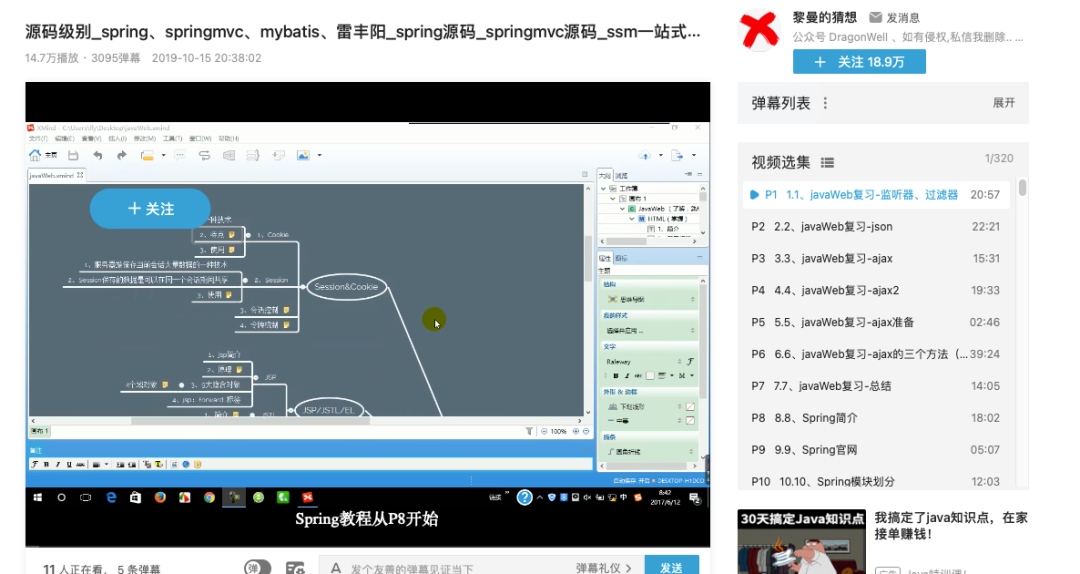 这个视频面向的是 Java Web 的,源码级别的方式讲解了spring、springmvc、mybatis。