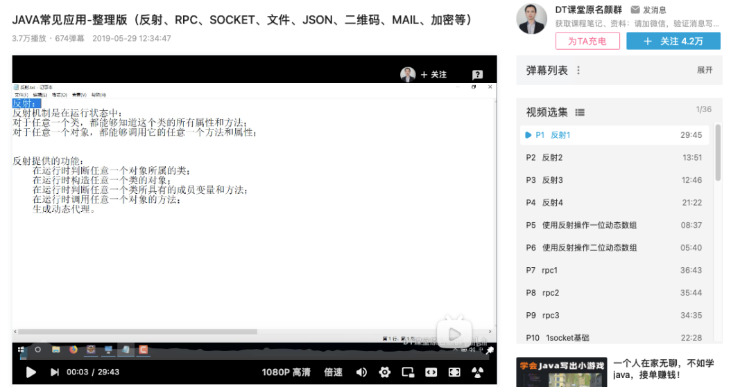 这个视频是 Java 的重点知识整合,是偏向应用类的,比如反射、RPC、SOCKET、文件、JSON、二维码、MAIL、加密等。