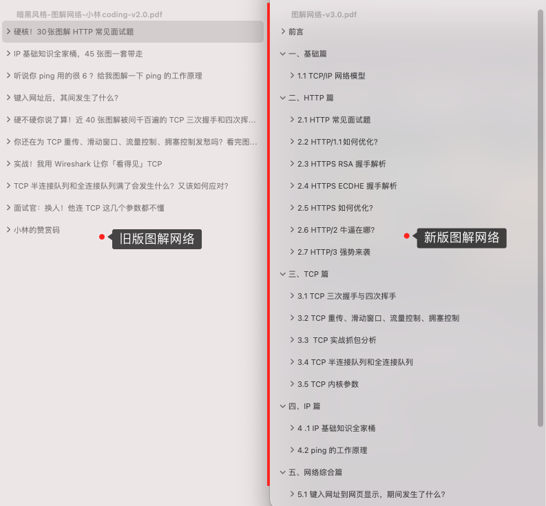 大家肯定第一个关心的就是,这次的图解网络 PDF 相比以前有什么变化呢?