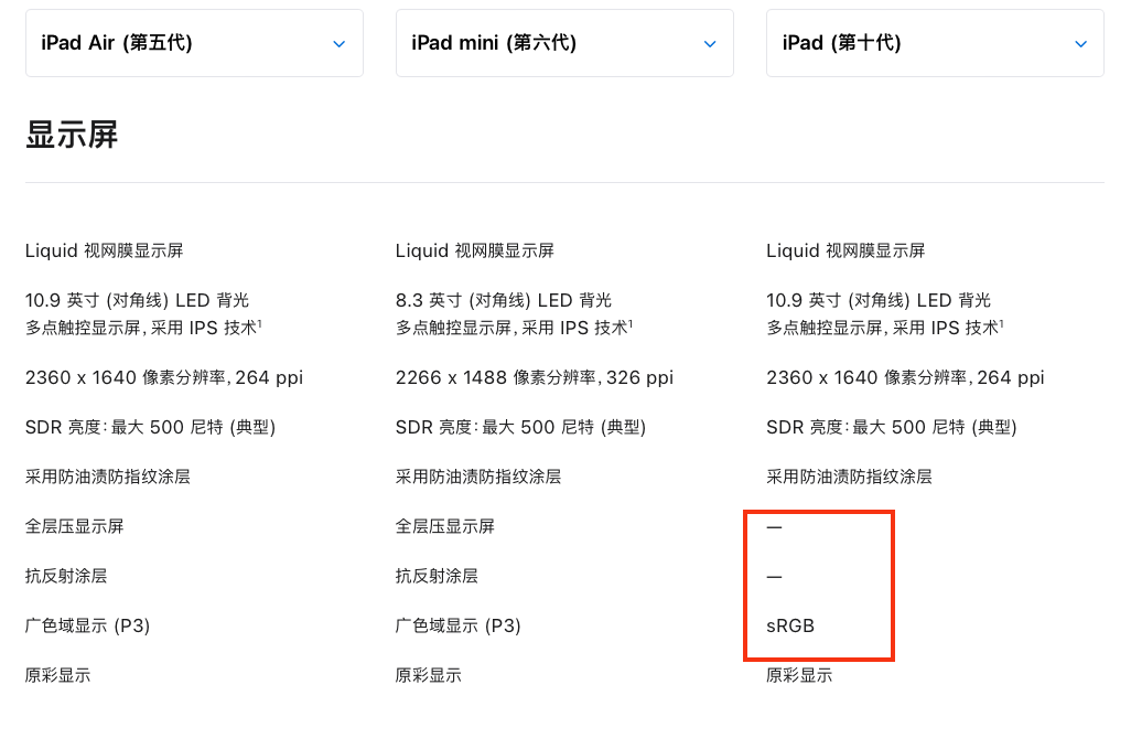 这三个主流平板该有的屏幕配置,iPad(第十代)都不给。