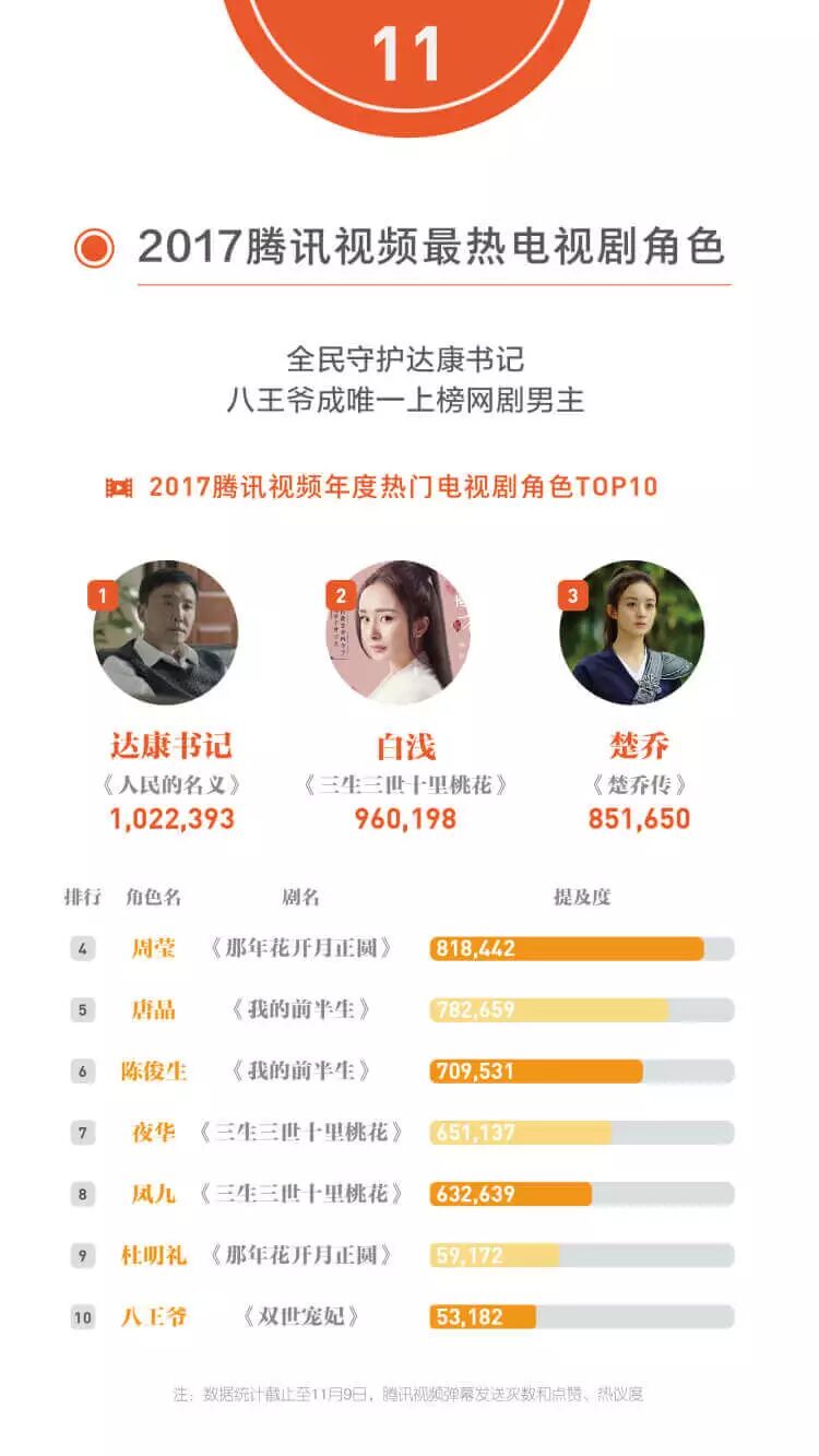 腾讯视频的这份榜单,除了涵盖年度综艺CP之外,还通过大数据平台统计出了2017年影视圈其他方面的战绩。