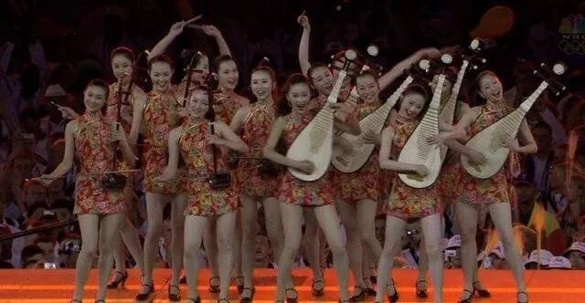 当年导演张艺谋从全国范围(绝大多数出自北电、中戏)挑选出14名个子高、颜值也高的年轻女孩,在闭幕式上表演民乐。