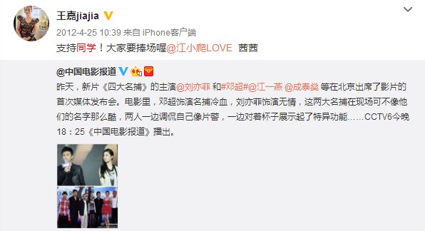 还各种支持江一燕和刘亦菲的电影。
