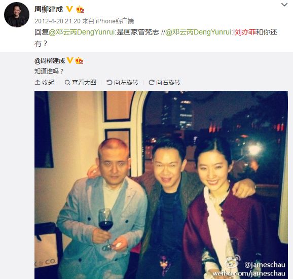 网上还曾经流传一张“陈金飞&刘亦菲贴面亲吻照”,但照片里的男性其实是央视英语新闻频道的主持人周柳建成。