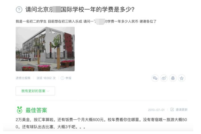 这个国际学校坐落在北京的CBD中心区域,2010年的学费就要2万美金。