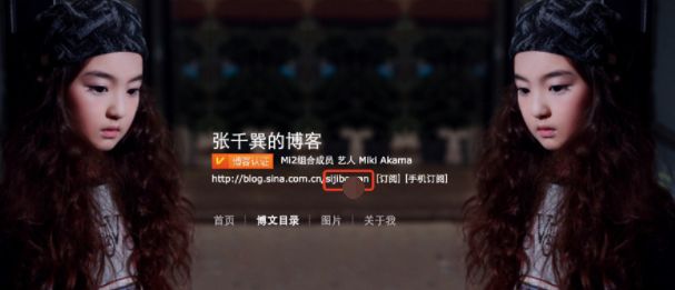 她新浪博客的域名是shiji**wan(世纪X湾),所以她曾经是世纪X湾的签约童星。