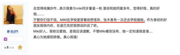 同学爆料称Miki在学校着装很奇怪,张木易还去学校接过她。