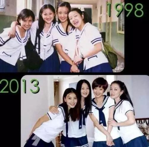 15年后四人还是好朋友,特意拍了同一组照片纪念。许还幻还做了高圆圆的伴娘。