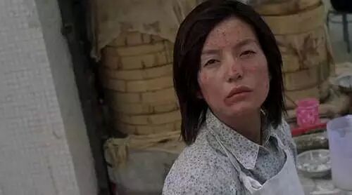 她拍了“最毁形象”的一部作品是《少林足球》,在里面饰演满脸痘痘的阿梅,还有一个光头形象。