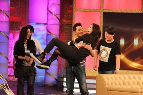 主持人要求何书桓公主抱,古巨基一把抱起赵薇舍不得放开,最后把赵薇轻轻放回沙发上,全程把主持人当空气