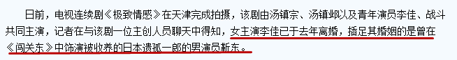 2011年4月,一篇新闻报道称李佳2010年已经离婚。报道还说李佳和靳东因为这部剧坠入爱河,导致了李佳离婚。