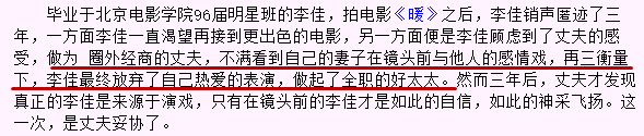 程青松曾经在博客上说,李佳当年也是《卧虎藏龙》玉娇龙的候选人。
