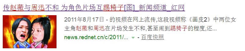 PS:邹雪就是04年赵薇打人事件的主角,据说赵薇后来知道事情真相,两人发生争吵,邹雪就诬赖赵薇嗑药&殴打酒店服务员,还找来电视台和医院目击证人,最后赵薇司机看不下去打了她。后来法院判赵薇无罪,司机承担一切责任。邹雪现在改名邹佡,高圆圆和谢霆锋演的《一生一世》就是她执导的。