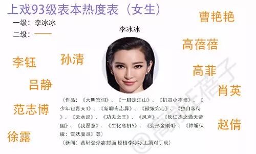综上,上戏93级表演本科班女生的作品和现状如图: