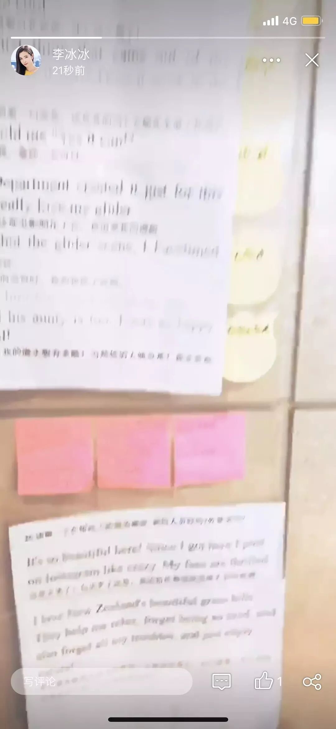 李冰冰勤奋到上厕所也要背单词