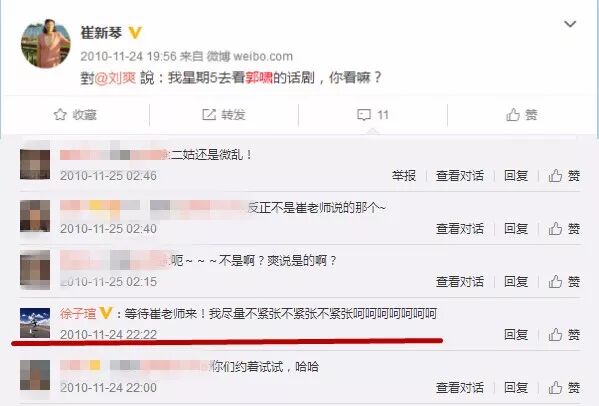 而且班主任崔新琴在微博上说要去看郭啸的话剧,徐子瑄的ID回复证实是同一个人。