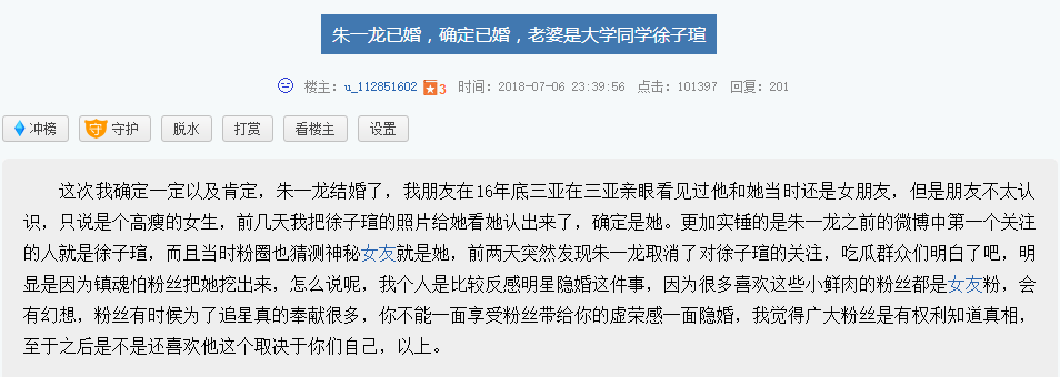 她最近在粉圈里受关注度非常高,原因是有网友发帖称她和朱一龙已婚,还有人说她是朱一龙前女友……此瓜存疑。