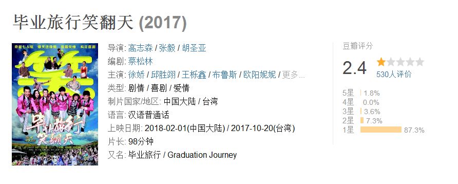 但他依旧没有红,而且长期以来,作品平均分数都很低,也没有拿得出手的奖项